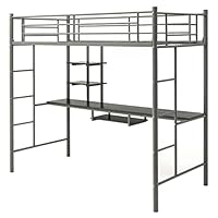 | 10 | Multigot Bunk Bed with Desk, 2-Side Ladder Single Loft Bed with Open Shelves and Safety Guardrail, Metal Frame High Sleeper for Kids Teenagers Adults (Silvery Grey)