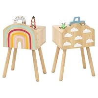 | 1 | Maxmass Kids Bedside Table Set of 2, Wooden Children Side End Tables with Compartments, Anti-toppling Devices, Solid Wood Legs, Toddler Bedside Cabinet Nightstand for Bedroom Living Room Nursery