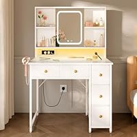 | 4 | ANWBROAD Dressing Table with Lighted Mirror Makeup Vanity Desk with Power Outlet 7 Drawers 3 Colors Lighting Adjustable Brightness Modern Vanity Table for Women Bedroom Dressing Room White YBDT90W