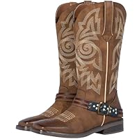 | 9 | J's.o.l.e Women's American Flag Cowboy Cowgirl Western Boots Square Toe Wide Mid Calf, Brown, 7 UK