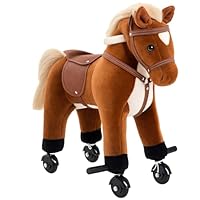 | 4 | HOMCOM Rocking Horse Kids Ride on Walking Horse Animal Pony Wheeled Riding Plush Toy w/Sound for 2 Years and Up (Brown)