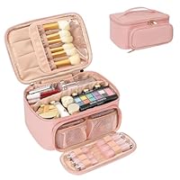 | 1 | Travel Makeup Bag, Portable Cosmetic Bag with Makeup Brush Organiser Large Capacity Make up Case Water-Resistant Toiletry Bag for Women Travel Essentials, Large Pink