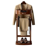 3 Qcesorib Solid Wood Suit Rack Stand, Freestanding Valet Stand with Tray, Men's Valet Coat Stand with Contour Hanger, Solid Base, for Bathroom Office Bedroom, Walnut
