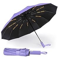 9 SOPPY Folding Umbrella Windproof, 12 Reinforced Ribs Travel Umbrella for Men Women,Auto Open and Close, Strong and Portable, Lightweight Umbrella with Teflon Coating-Purple