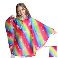 | 8 | Baogaier Kids Rain Poncho Waterproof Rain Jacket Lightweight with Hood Reusable Raincoat Girls Rain Cape for School Camping, Hiking Outdoor Rainwear for 6-10 Years, Rainbow Horse