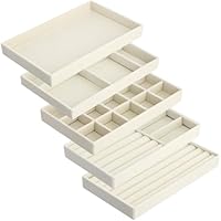 | 2 | QWORK® 5 Pack Jewelry Trays Organizer, Velvet Jewellery Tray, for Earring, Ring, Necklace and Bracelet Display, Beige