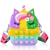 6 Ainiv Crossbody Pop it Bag, 2 in 1 unicorn Fidget Shoulder Bag for Girls, Silicone Push Bubble Small Purse with Adjustable Strap Length, Relief Stress for Adult Kids (Colorful)