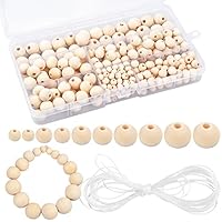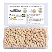 | 1 | WELHAEPI 400 Pcs Wooden Beads Set, Natural Round Wood Beads with Storage Box for DIY, Jewelry Craft Making, Crafting, Handmade Decorations, Wooden Decorative Beads (8mm), Clear
