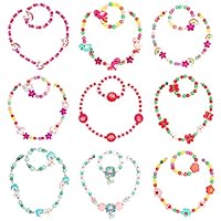 | 8 | Hifot Beaded Necklace and Bracelets for Little Girl 9 Sets, Unicorn Mermaid Flamingo Butterfly Rainbow Flower Dolphin Crown Wooden Bead Dress Up Jewelry Set Party Favor Bag Gifts for Kids