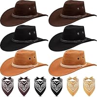 6 | MSYU 6 Pieces Cowboy Hats and Bandanas Bulk Cowboy Cowgirl Hats Costume Party for Men Woman (Classic Color)