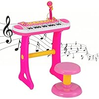 | 6 | GYMAX 31 Keys Kids Piano and Stool with Stand, Electronic Keyboard, Adjustable Microphone, Flashing Light, Record & Playback Functions - Portable Musical Toy for 3+ Girls Boys (Pink)