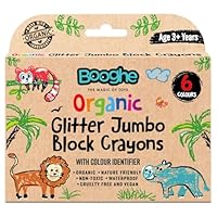 | 2 | Booghe Glitter Crayons - Organic Glitter Jumbo Block Crayons - Made With Organic Ingredients and Food Grade Colors - Eco Friendly, Non Toxic, Waterproof, Pack of 6, Age 3 + Years