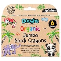 | 3 | Booghe Crayons Organic Jumbo Block Crayons - Made With Organic Ingredients and Food Grade Colors - Nature Friendly, Non Toxic, Waterproof, Pack of 6, Age 3 + Years