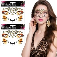 | 1 | Thinp 2 Pcs Cheetah Face Stickers, Halloween Temporary Tattoo Sticker Self-Adhesive Leopard Face Stickers Glitter Faces Gems Jewels Halloween Decorations for Festival Makeup Party Cosplay Accessories