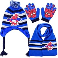 | 6 | LKNBIF Spider Kids Winter Warm Beanie Hat Scarf Gloves Set, Supperhero Kids Hat Scarf Gloves Set Children's Warm Scarves Hats Gloves Children Winter Scarf Knitted Hat Set for Boys Aged 2-8
